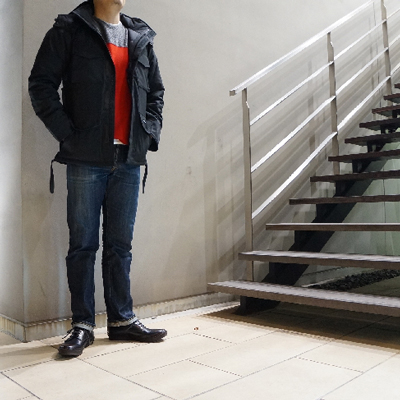 特殊部隊用のデザインページにしている硬派なモデル。ジャケットぐらいの丈なのでカジュアルに着こなしやすいです。 フードを外すとM-65タイプになります。 一番スマートなのはこれです。 スタイリングには・・・ ジーンズ (SCYE BASICS) レザースニーカー (BUTTERO)