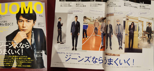 UOMO5月号でキレイめトップスにジーンズのスタイリング“キレカジ”を紹介していました。
